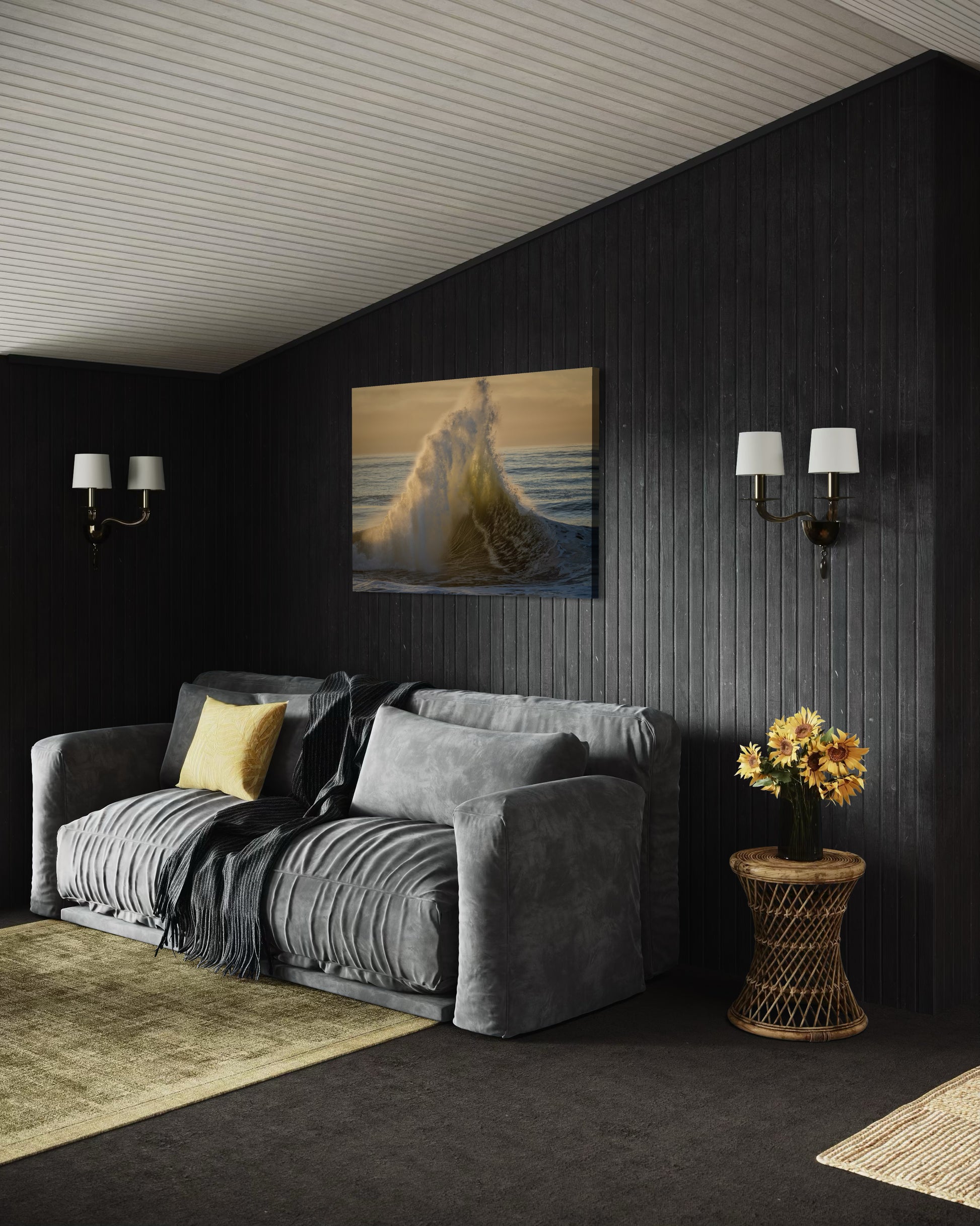 Aluminum (Mounted) - The image is vividly printed on premium aluminum through an advanced dye sublimation process, ensuring a durable, striking display. The aluminum print is mounted to an Inset Metal Frame, offering a sleek, modern, unframed aesthetic. The black metal frame, inset from the print’s edge with a 1-5/16” depth, is finished with a wire hanger for effortless installation.